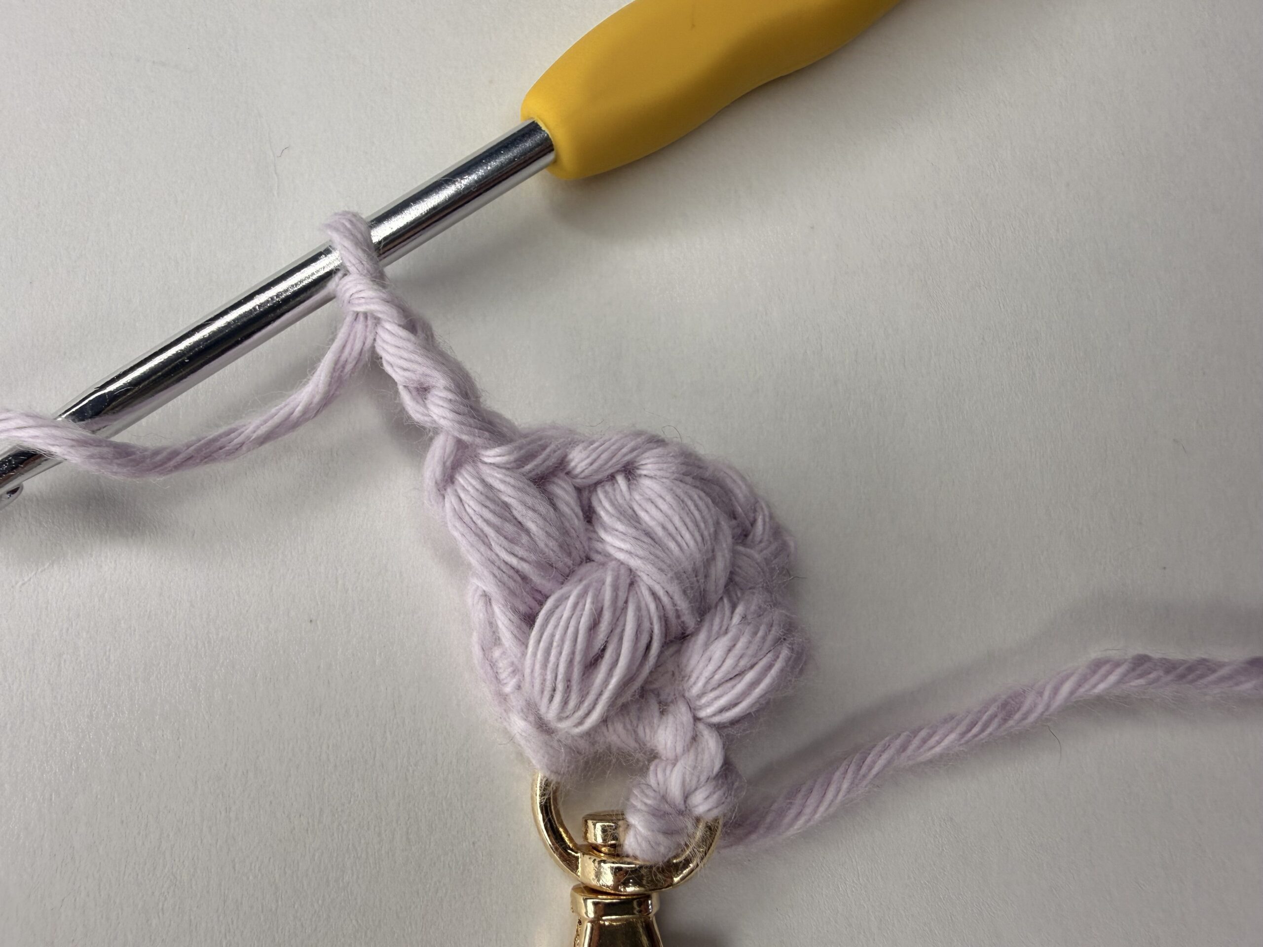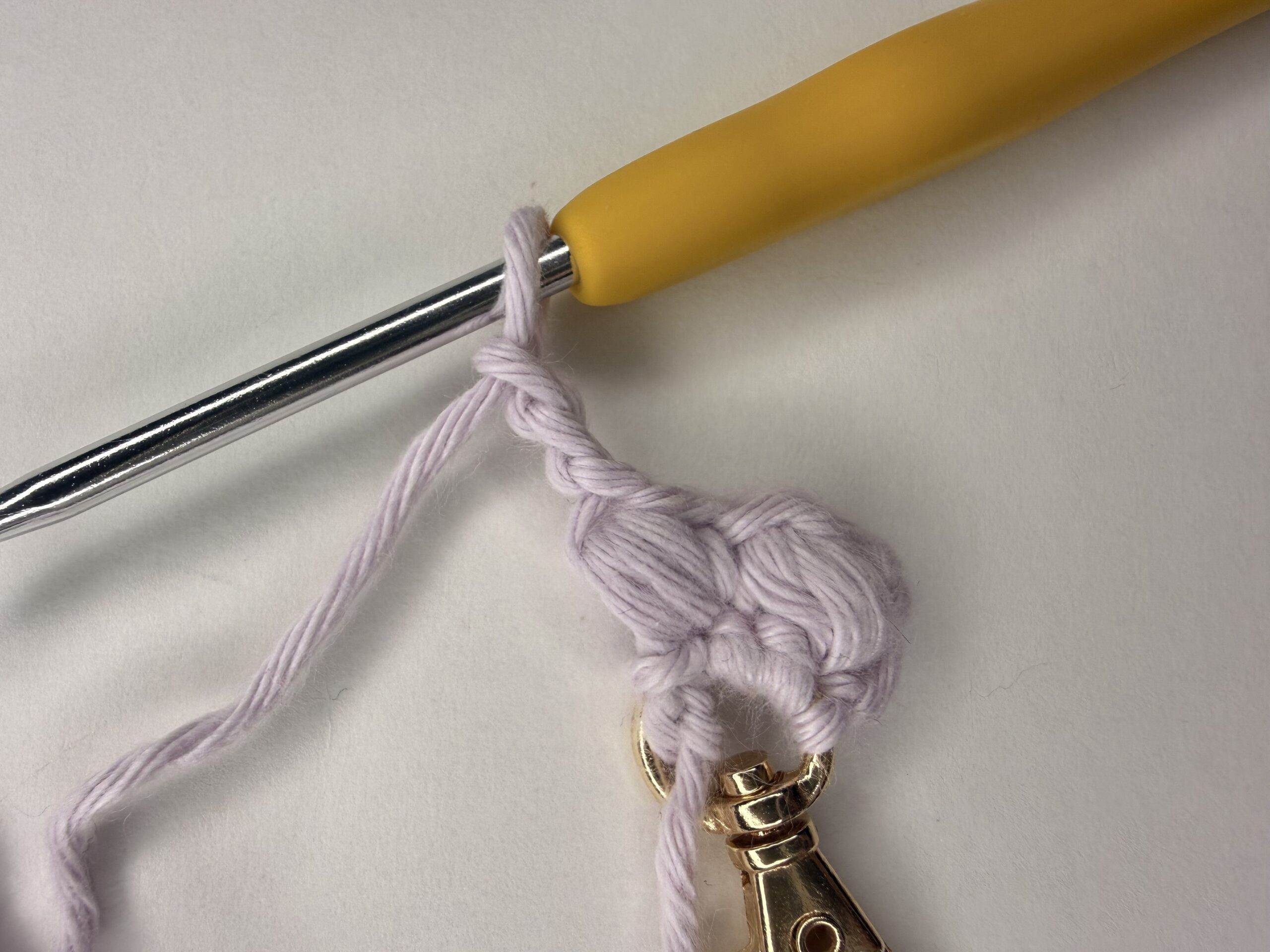 For the first part of this pattern, you’ll need to make two single crochets into your lobster clasp ring.