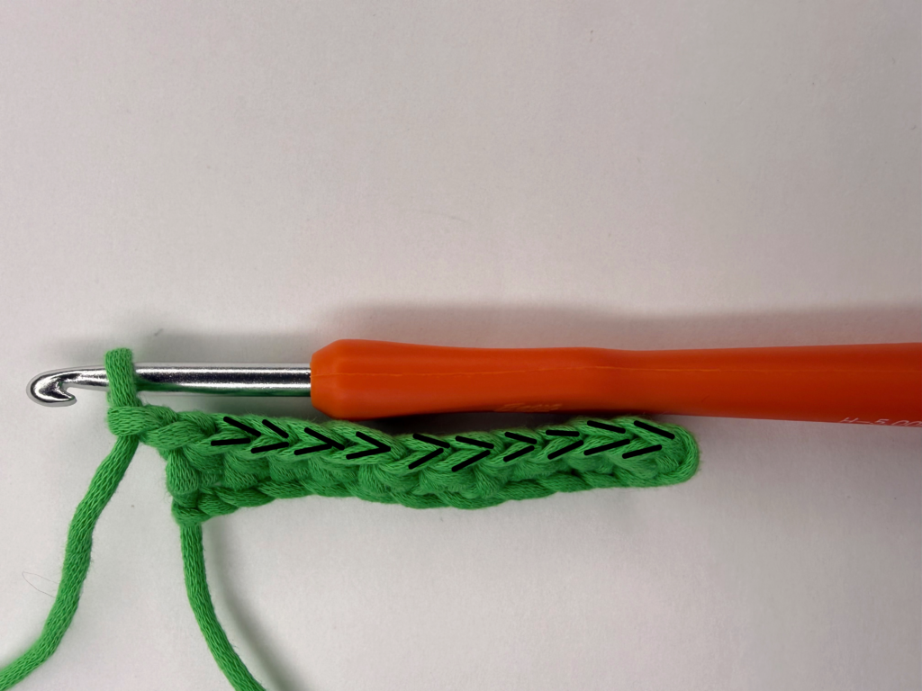 At the end of each row, you’ll want to be sure to chain 1, to signify the height of a single crochet in a project. This will make sure that you project stays as straight as possible.